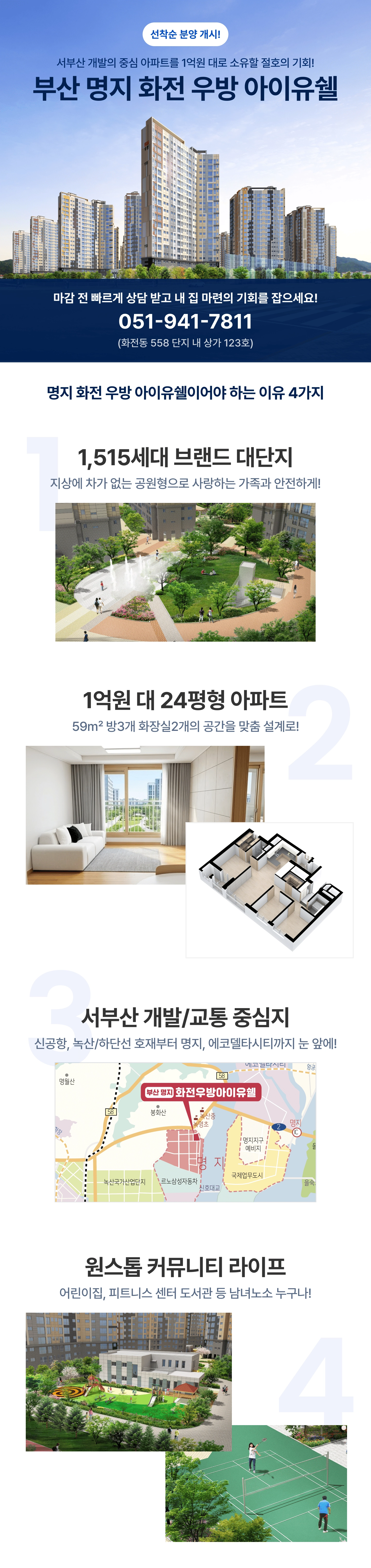‘실거주, 투자 모두를 아우르는 아파트’ 부산 명지 화전 우방 아이유쉘과 함께 하세요!